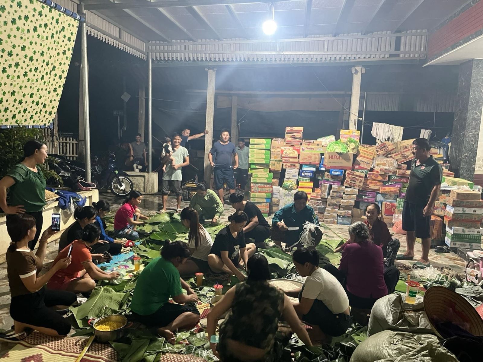 Người dân thôn Ngọc Chẩm, xã Thăng Long (huyện Nông Cống) thức trắng đêm gói gần 600 chiếc bánh chưng