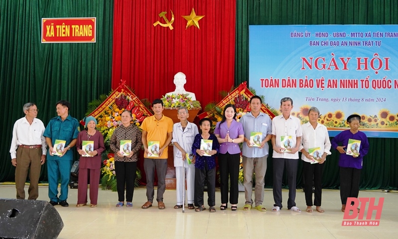 Trưởng Ban Dân vận Tỉnh ủy, Chủ tịch Ủy ban MTTQ tỉnh Phạm Thị Thanh Thủy trao tặng Bằng khen của Chủ tịch UBND tỉnh Thanh Hóa cho Nhân dân xã Tiên Trang đã có thành tích xuất sắc trong phong trào “Toàn dân bảo vệ ANTQ” và tổ chức các hoạt động “Ngày hội toàn dân bảo vệ ANTQ”.