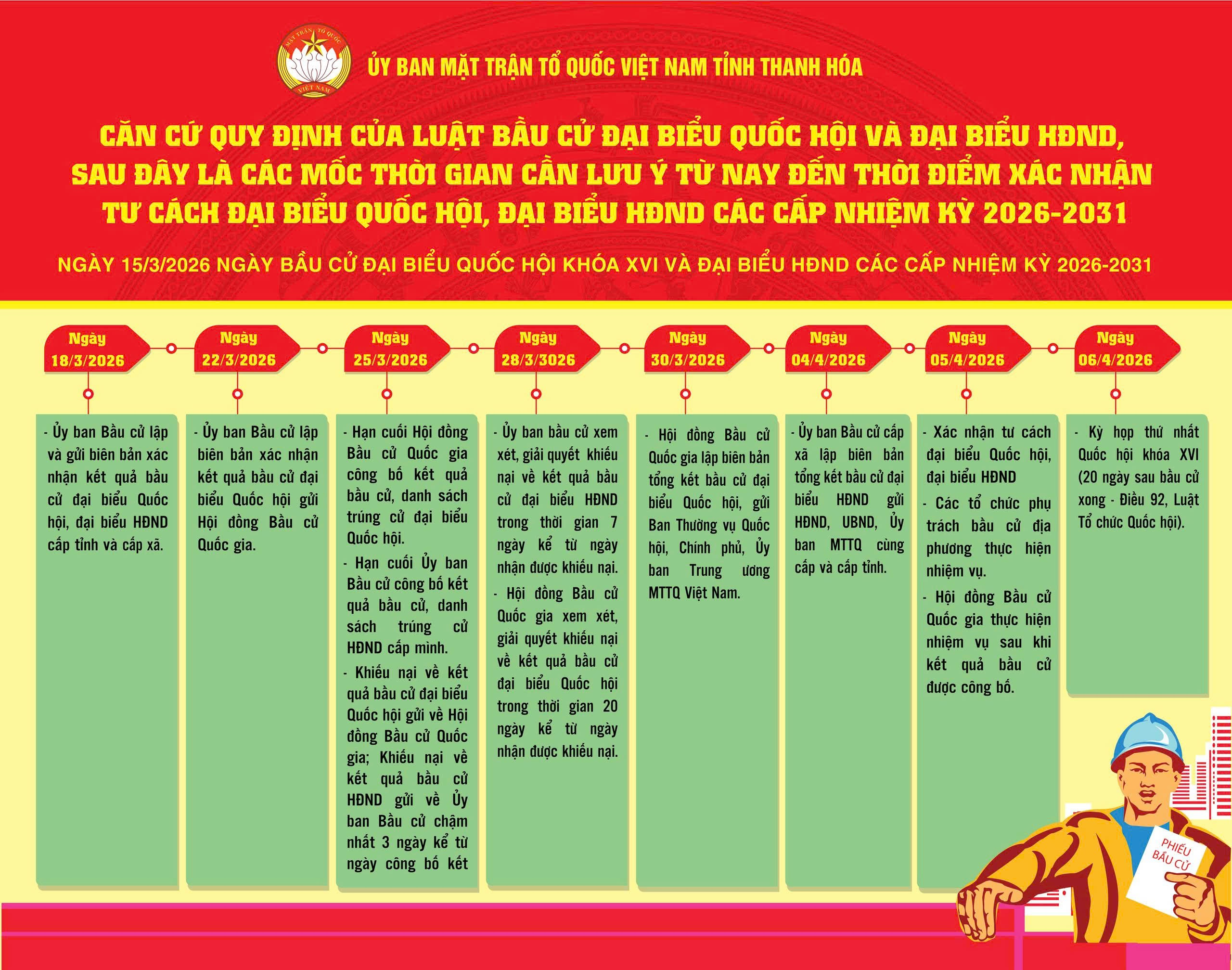 (Infographich) các mốc thời gian cần lưu ý sau ngày bầu cử đại biểu Quốc hội và đại biểu HĐND các cấp, nhiệm kỳ 2026-2031