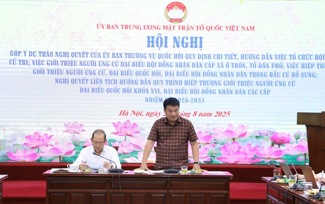 Theo đó, thời gian qua Ban Thường trực Ủy ban Trung ương Mặt trận Tổ quốc Việt Nam đã tích cực phối hợp với các chuyên gia, nhà khoa học, người hoạt động thực tiễn và các cơ quan, tổ chức liên quan xây dựng dự thảo 02 Nghị quyết. Ngày 22/8/2025 Ban Thường trực Ủy ban Trung ương MTTQ Việt Nam đã gửi Dự thảo Nghị quyết đã được gửi xin ý kiến các vị Đoàn Chủ tịch Ủy ban Trung ương MTTQ Việt Nam; Ban Thường trực Ủy ban MTTQ Việt Nam 34 tỉnh, thành phố; đăng tải trên website Mặt trận Tổ quốc Việt Nam; dự thảo cũng đã được gửi xin Chính phủ, Văn phòng Chính phủ, Bộ Nội vụ; Văn phòng Quốc hội, các bộ, ngành, các cơ quan, tổ chức, cá nhân có liên quan. Đồng thời, dự thảo cũng đã gửi xin ý kiến các đồng chí trong Ban Thường vụ Mặt trận Tổ quốc, các đoàn thể Trung ương. Hầu hết các ý kiến góp ý đều thống nhất với Nội dung dự thảo; một số ý kiến góp ý đề nghị cân nhắc bổ sung và làm rõ hơn một số quy định; một số ý kiến góp ý liên quan đến kỹ thuật soạn thảo.