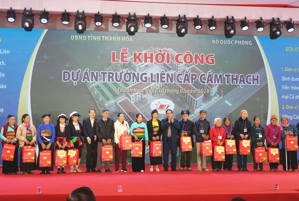 Tại lễ khởi công, nhân dịp Tết đến – Xuân về, Thủ tướng Chính phủ Phạm Minh Chính cùng các lãnh đạo Trung ương, bộ, ngành đã trao hàng trăm suất quà Tết cho các hộ nghèo, gia đình chính sách, học sinh và công nhân lao động có hoàn cảnh khó khăn trên địa bàn xã Cẩm Thạch.